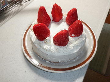 3月は娘の生まれた月。土日でないとケーキを作れないのと、最近は土日でも娘が出掛けてしまうのでケーキを作る機会が減りましたが、今回は用事が無いようだったのでケーキを作りました。作るか作らないかを聞いたのが金曜日。いるということで急遽土曜日(朝はいつもの河口に行っていたので・・・釣りの部屋参照)の釣りから帰ってきたらスポンジを焼きました。ほぼ1時間で焼き上がり、冷めるまで待つために昼食を食べに外へ。帰ってきて3時前に最後のデコレーションを行い、完成。何とか3時のおやつの時間を少し過ぎた頃にできあがりました。いつも通りのイチゴのケーキです。